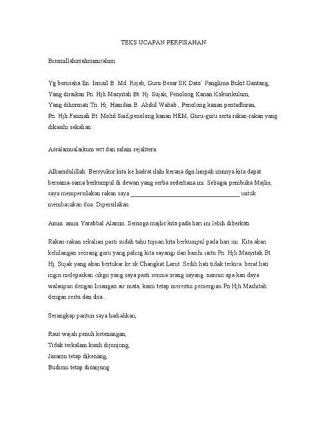 Ini adalah contoh pantun perpisahan yang mewakili perasaan setiap insan yang mau berpisah atau telah berpisah. Pantun perpisahan terbaik kenangan memori bersama teman dan kekasih, yang entah bila kan bersua lagi. Ucapan perpisahan rakan sekerja youtube. Bertemu dan berpisah adat resam biasa. Hasil diatas adalah hasil pencarian dari anda teks ucapan perpisahan mp3 dan menurut kami yang paling cocok adalah teks ucapan perpisahan.