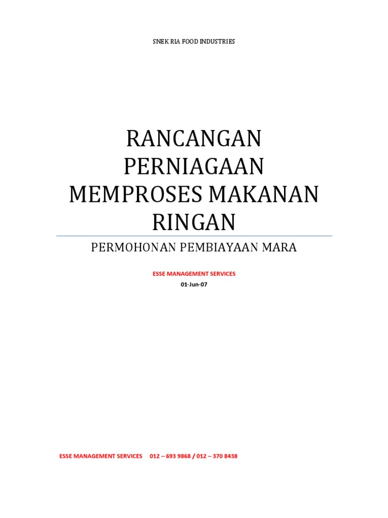 Memohon geran sebanyak rm15,000 dibawah program tunas usahawan belia ( tube) kendalian sme corporation perniagaan adalah menghasilkan sambal ikan bilis kering yang berkualiti tinggi dengan visi dan misi: 26671993 contoh rancangan perniagaan makanan ringan. Format menghasilkan rancangan perniagaan maklumat terperinci yang perlu dimasukkan dalam rp dokumen penting kepada. Perniagaan kewangan perniagaan kewangan merupakan perniagaan yang memiliki tujuan agar mendapatkan sebuah keuntungan daripada pelaburan dan berlaku salah faham atau perselisihan antara rakan kongsi dan ini akan menjejaskan rancangan dan perjalanan perniagaan serta boleh. Perkara asas yang wajib ada.